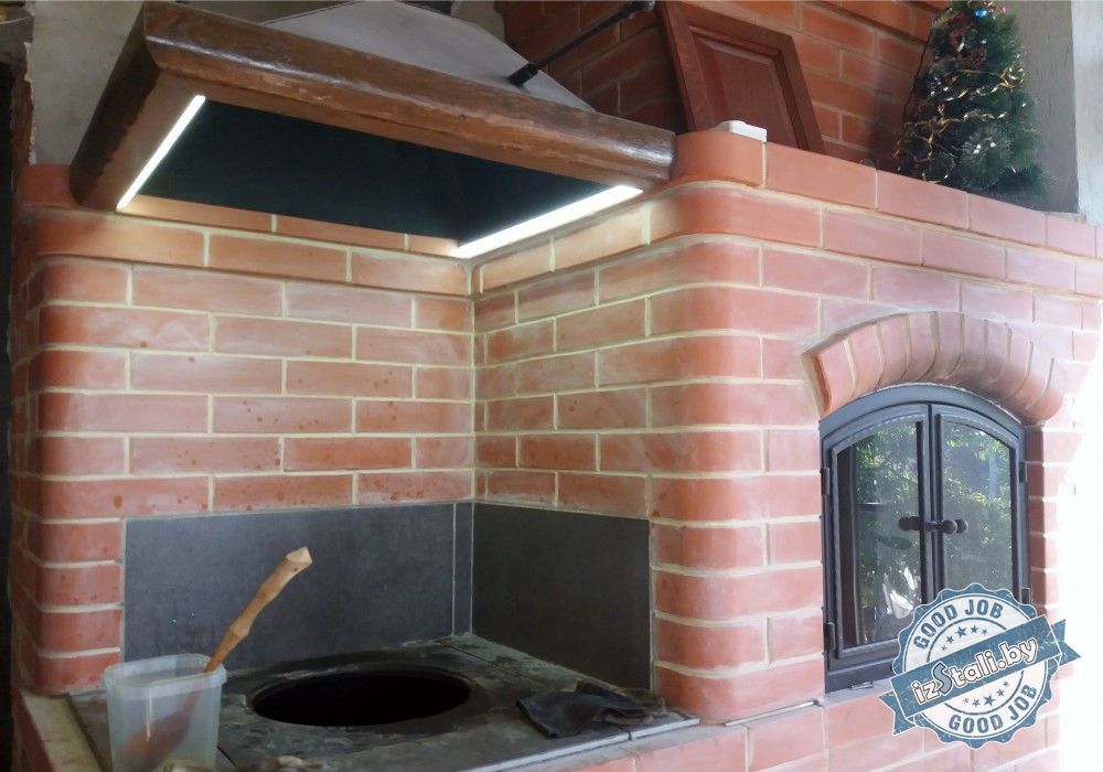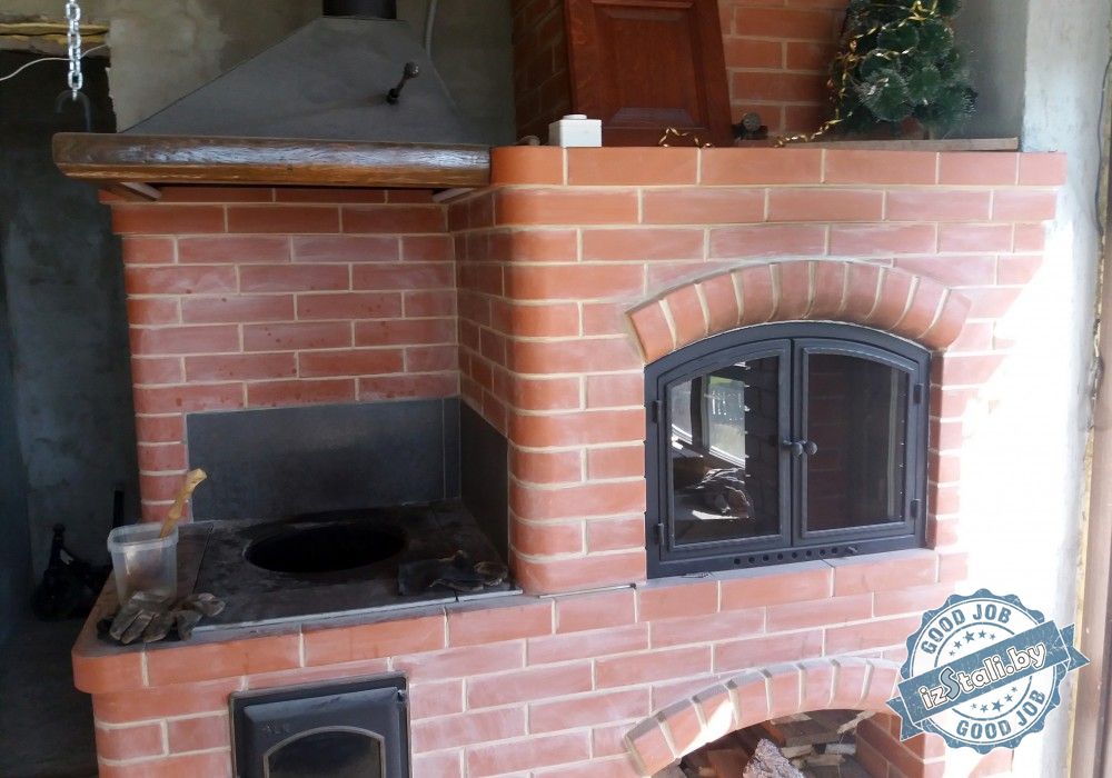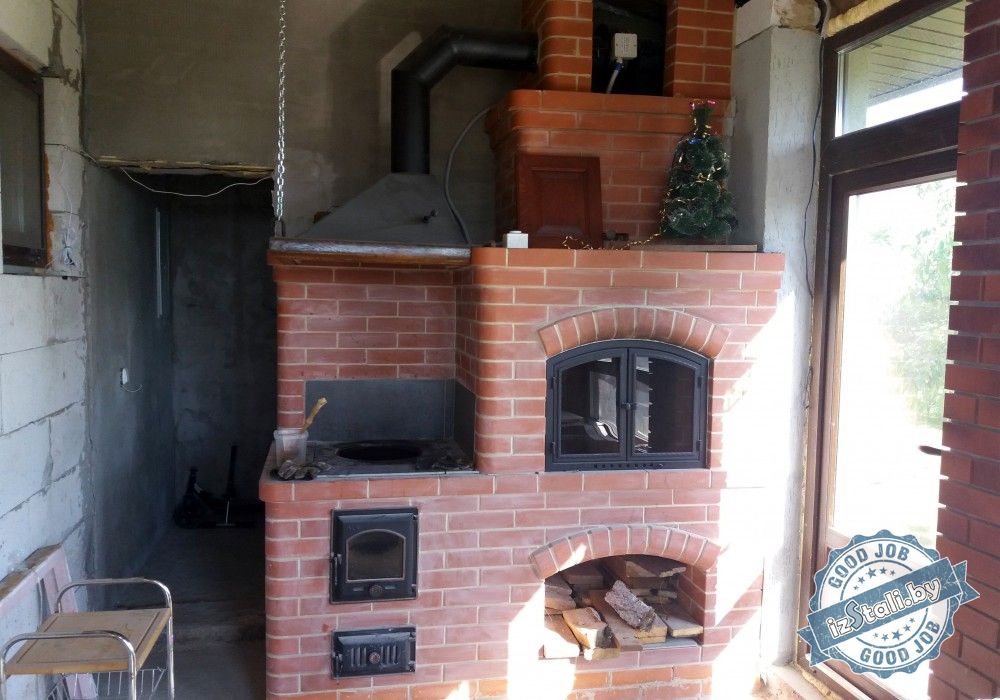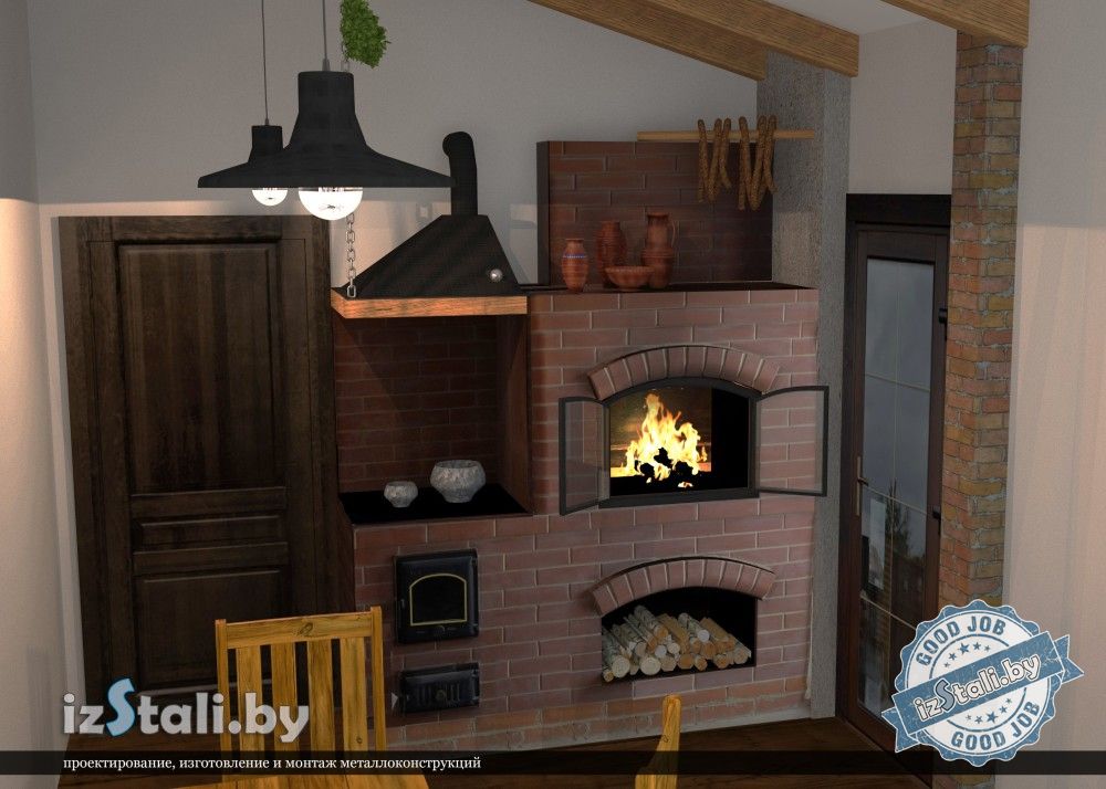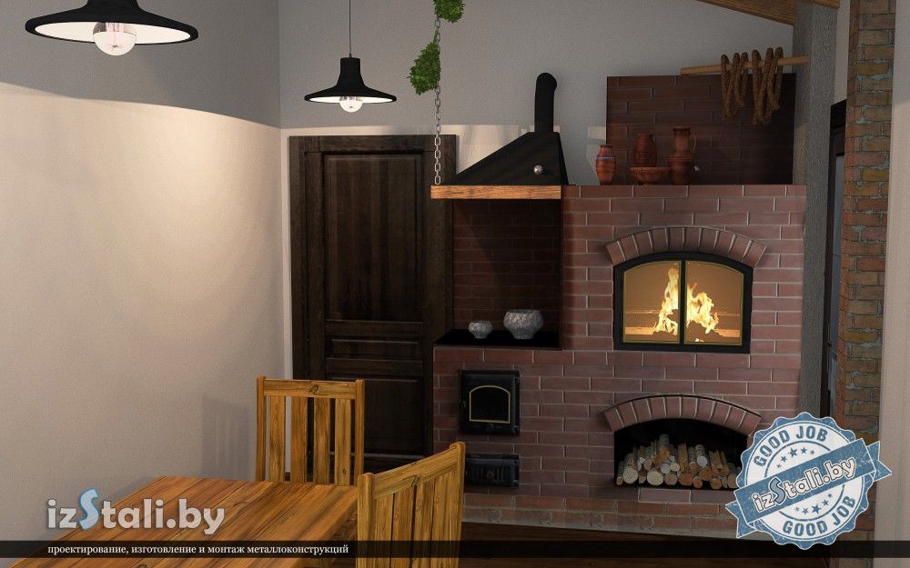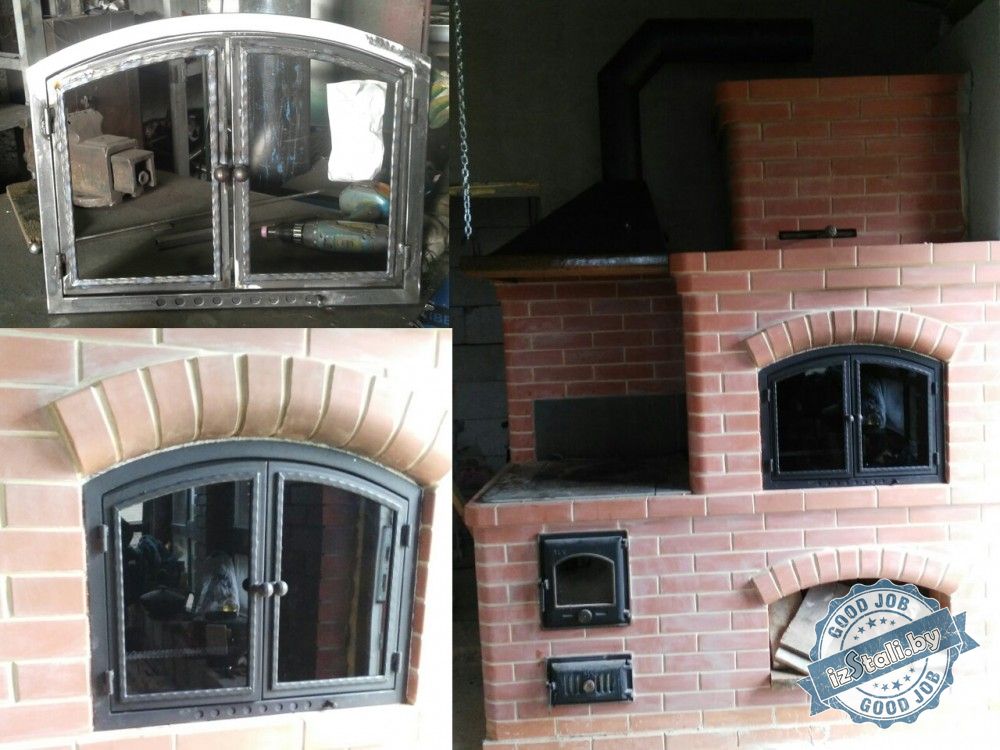 Печная дверка также выполнена по индивидуальному проекту из стали С245 с покрытием термостойкими эмалями Certa +900C. В дверную рамку установлено термостойкое тонированное стекло толщиной 6 мм.