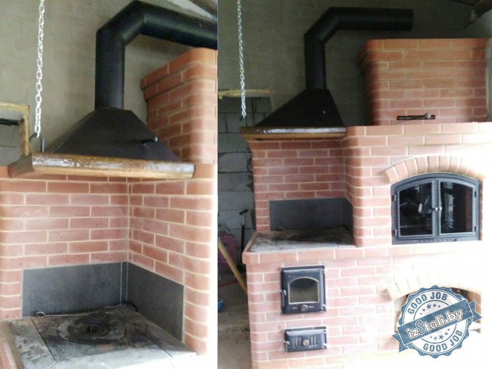 Вытяжка над плитой выполнена по индивидуальному проекту. В качестве материалов использована сталь С245 с антикоррозийоной защитой термостойкими грунтами и эмалями черного цвета.