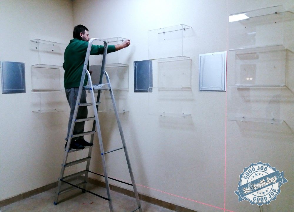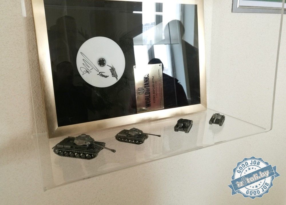 В дополнение к эмблеме, зал украшают полки ручной работы из органического стекла, на которых разместились макеты продукции выпускаемой предприятиями района, а также гордостью района в IT индустрии - субъектом Заводского района г.Минска СООО «Гейм Стрим». СООО «Гейм Стрим» является создателем игры "World of Tanks", завоевавшей мировое геймер пространство.