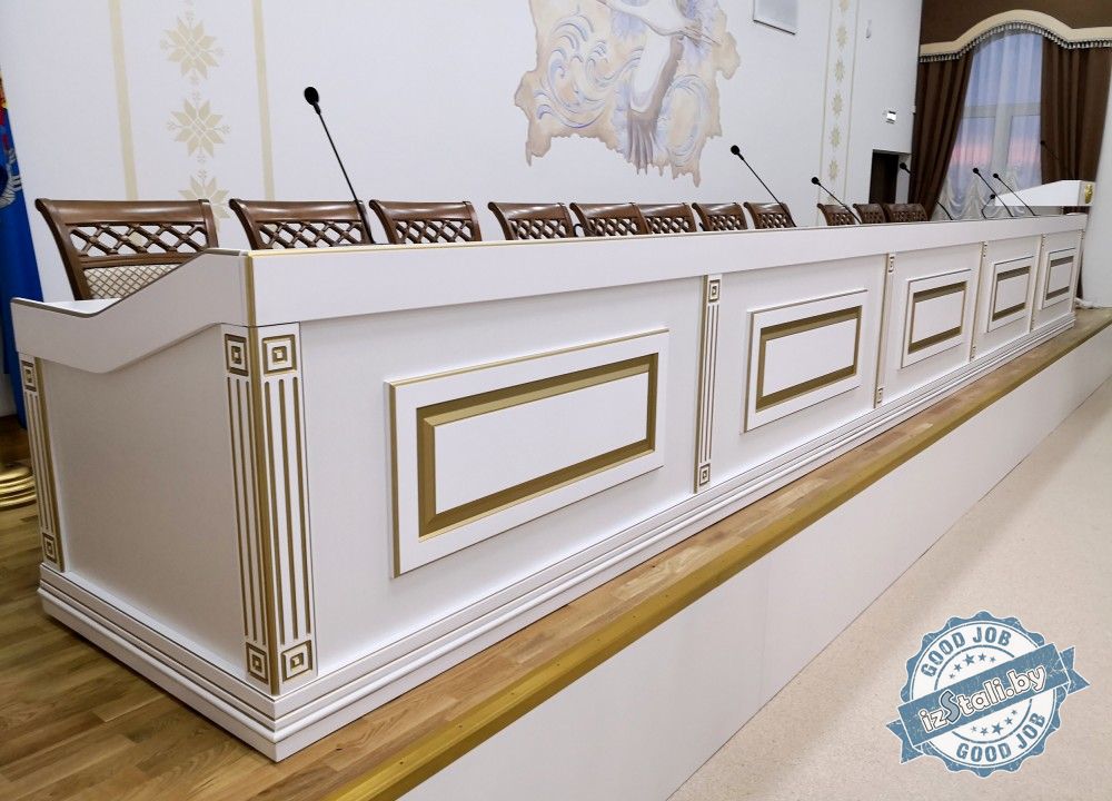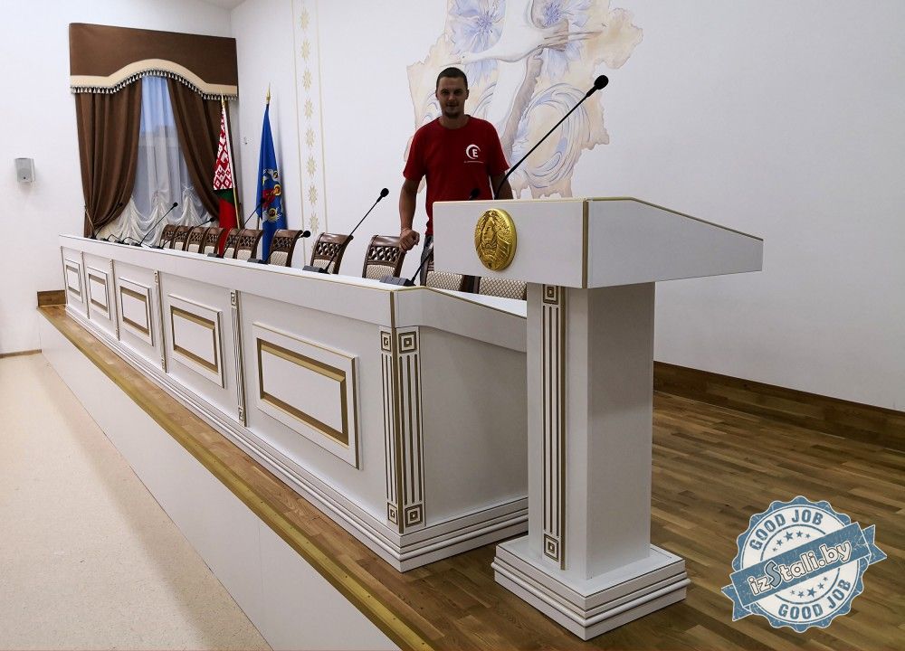 Стол президиума для сцены и тумба для выступления очень важные элементы при проведении совещаний, презентаций, выступлений. Это именно тот яркий элемент, который концентрирует внимание слушателей в зале.