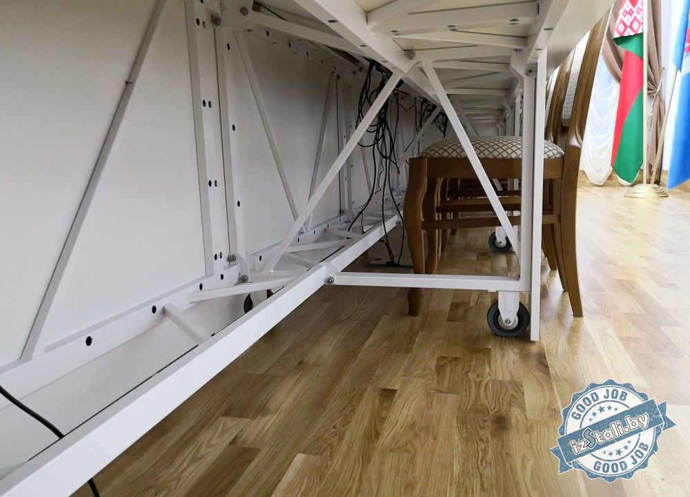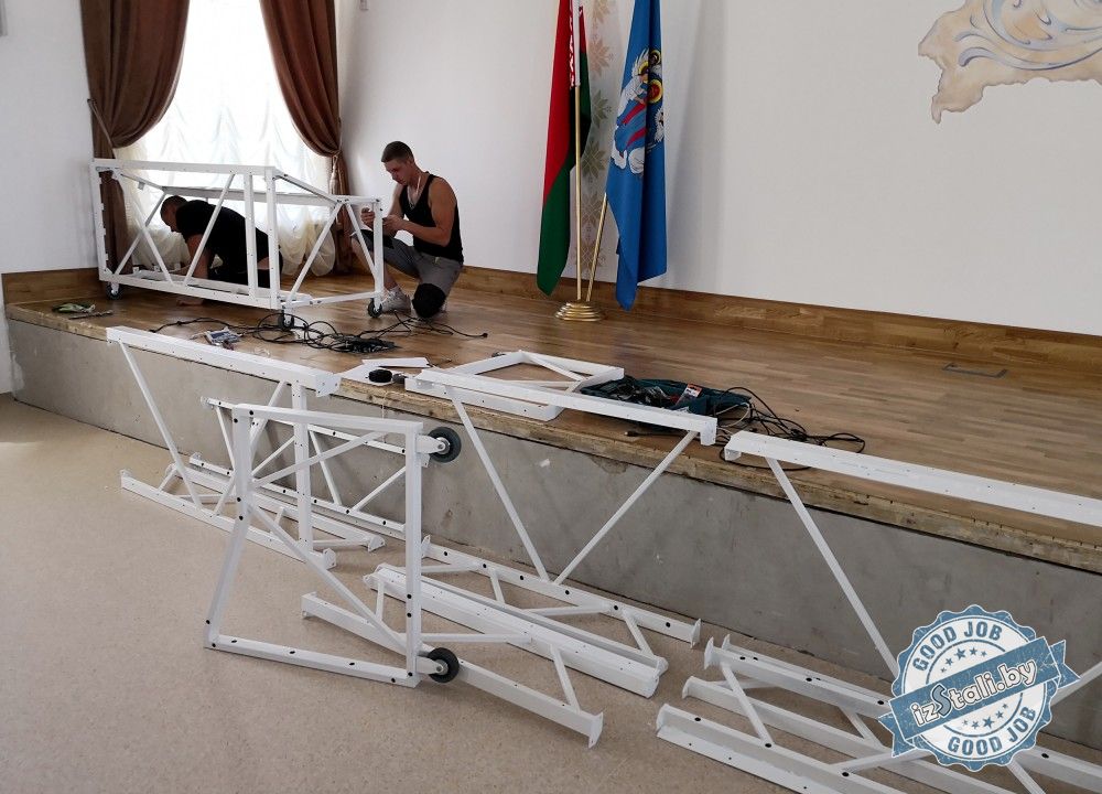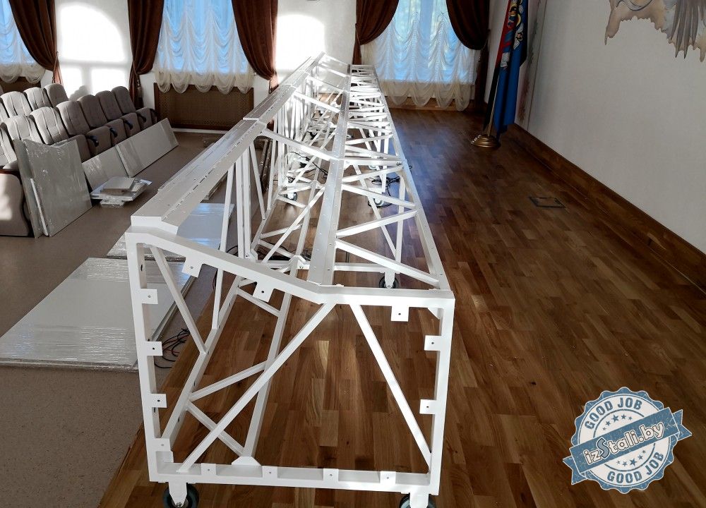 Прочный стальной металлокаркас с колесами-опорами гарантирует жесткость конструкции и позволяет ее без деформаций перемещать по сцене.