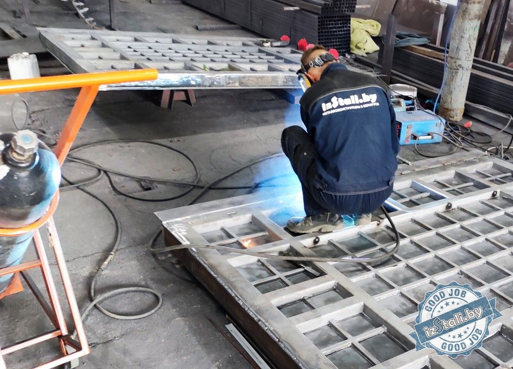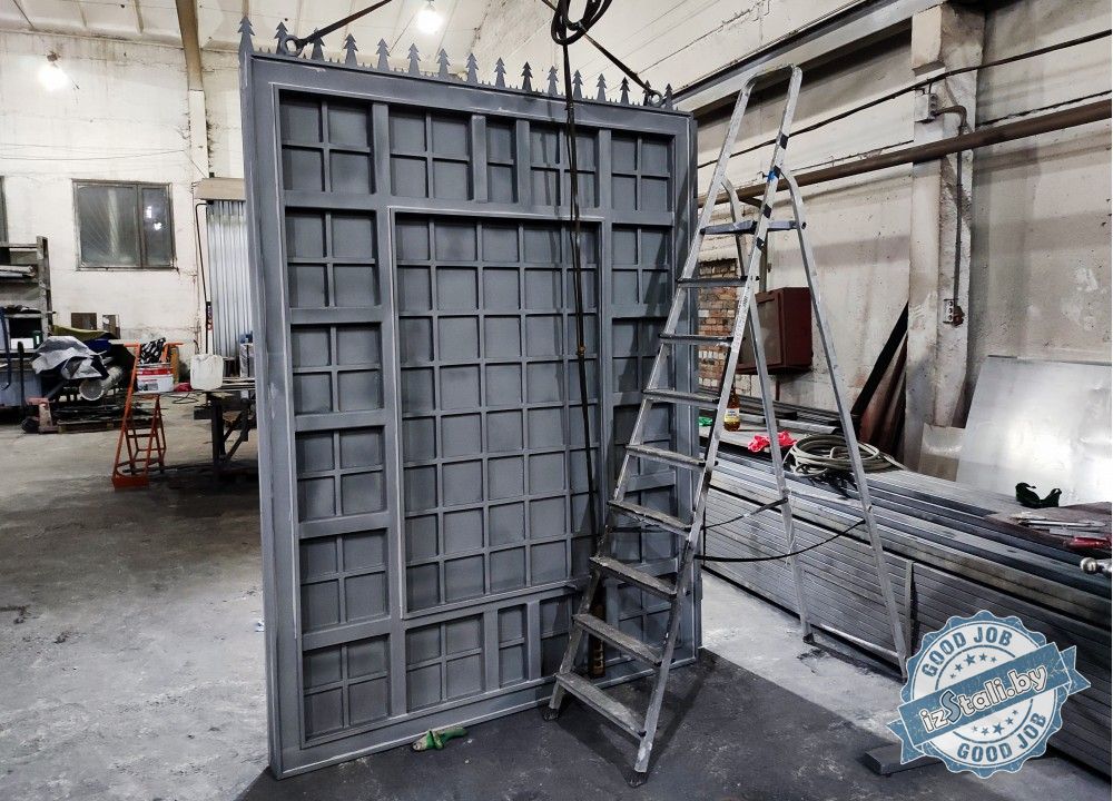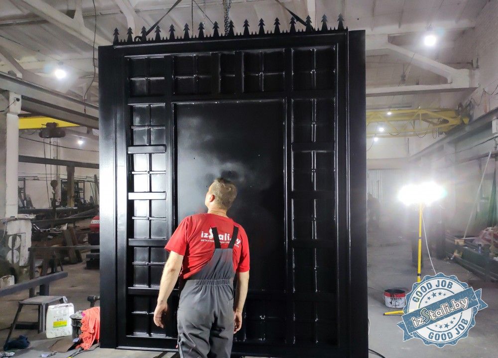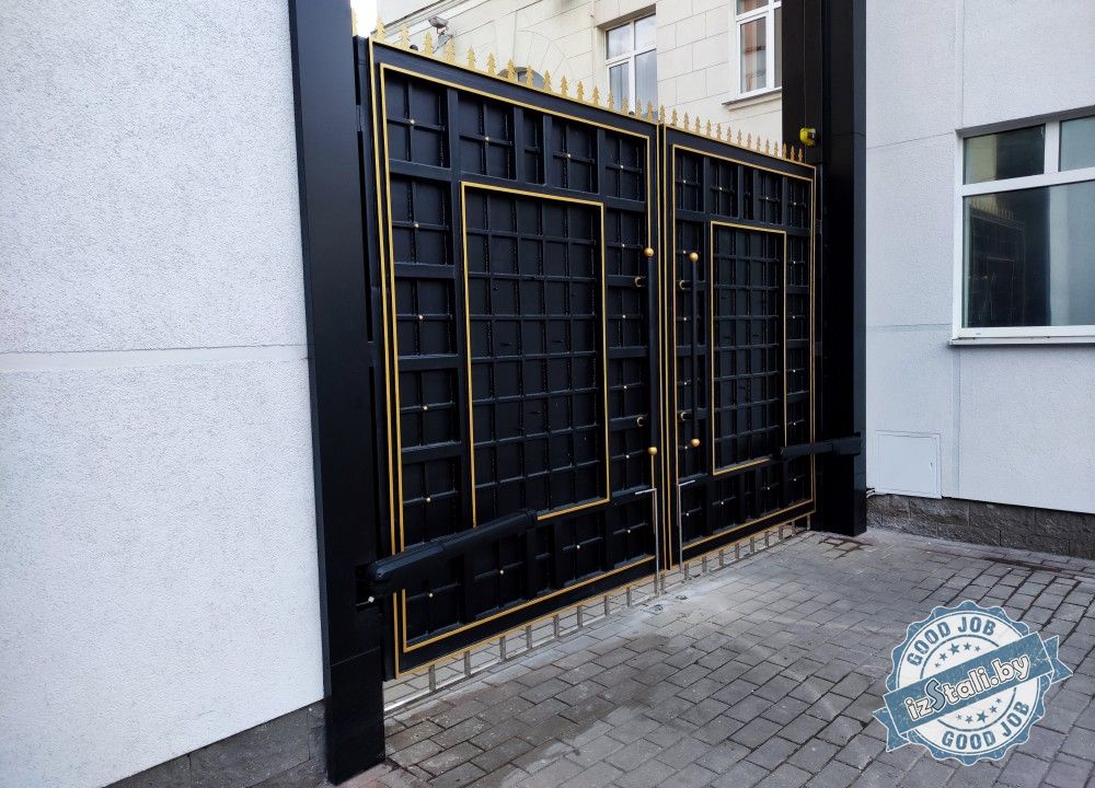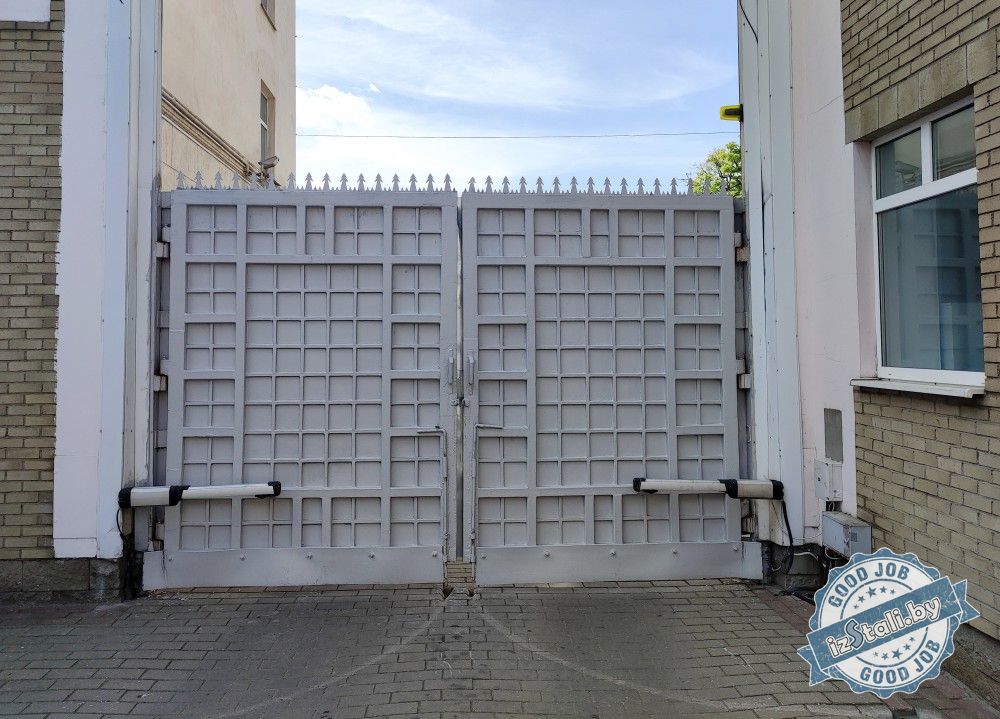 В процессе ремонта въездные ворота подверглись пескоструйной обработке с последующей окраской цинконаполненным грунтом и эмалями. Портал был отделан панелями из оцинкованной стали в полимерной окраске черного цвета. Вся конструкция была дополнена декоративными элементами с окраской в цвет янтарного золота. Объемные гербы учереждения образования выполнены из нержавеющей стали.
