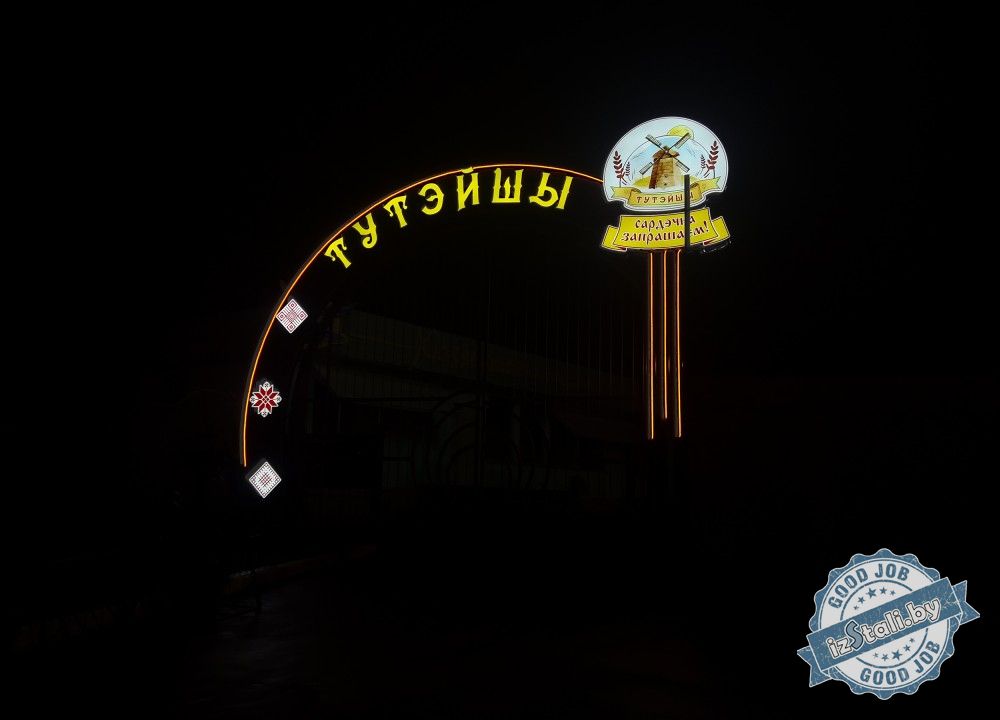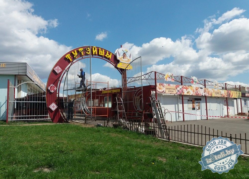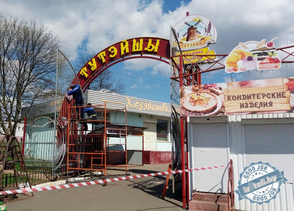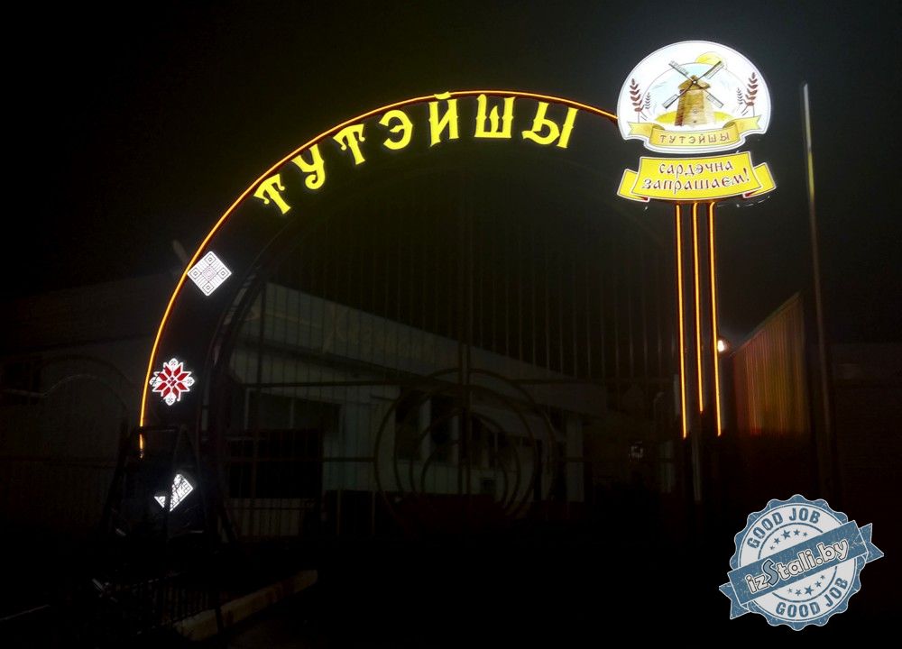 Для оснащения объекта «Универсальный рынок «Тутэйшы» по адресу: г. Минск, пр-т Партизанский, в рамках проведения реконструкции были установленна массивная входная группа со светящимися логотипами.