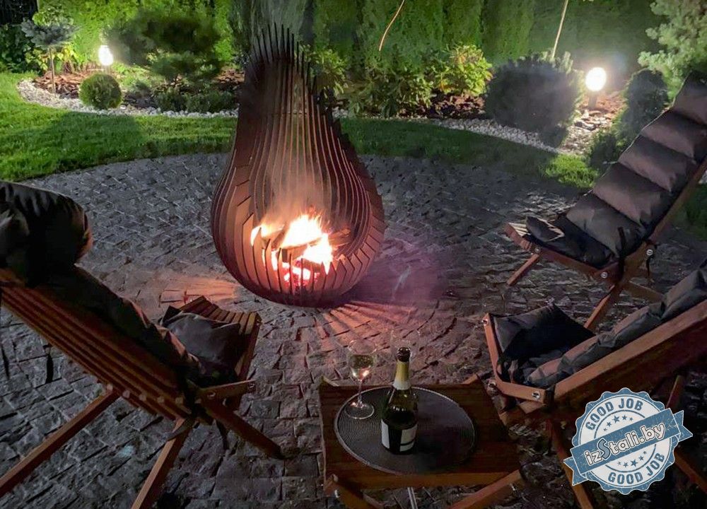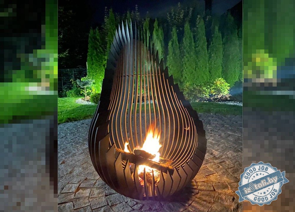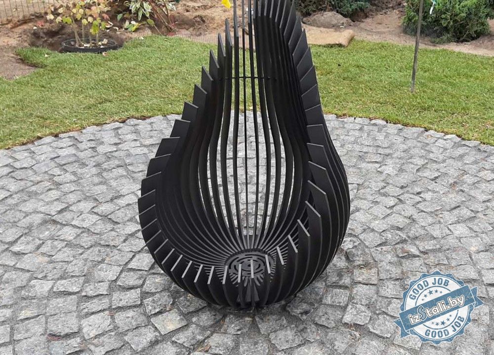 Украшением зоны отдыха и источником тепла служит декоративное кострище "Олимп" в форме капли (drop). Высота кострища 120см. Изготовлено кострище из толстолистовой стали нарезанной лазером на элементы, детали между собой жестко сварены. Изделие