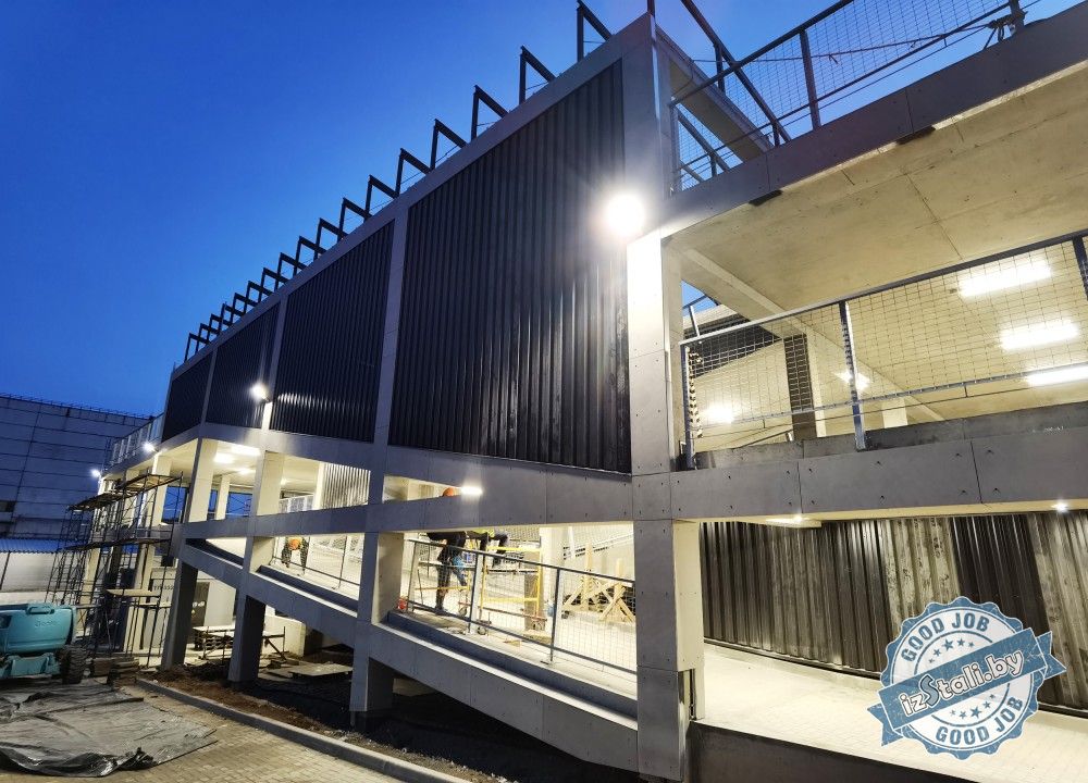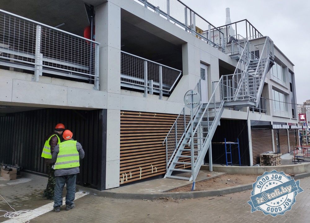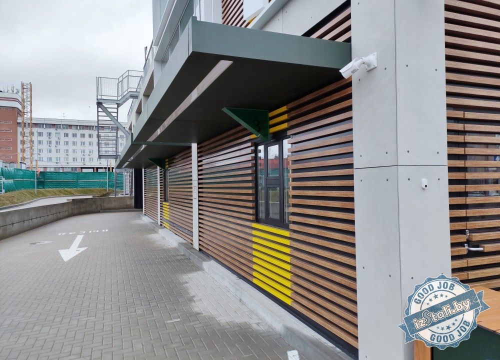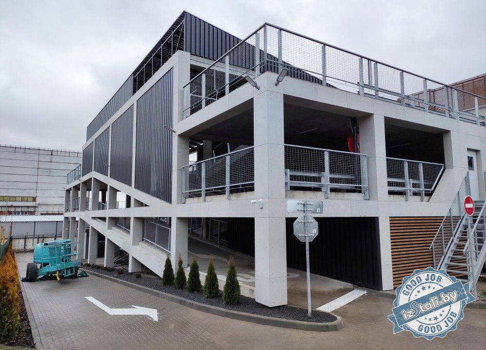 В результате насыщенной работы мы в очень сжатые строки реализовали неповторимый фасад здания из фиброцементных плит с множеством декоративных элементов. На все открытые площадки были установлены металлические ограждения с антикоррозионной защитой методом горячего цинкования.