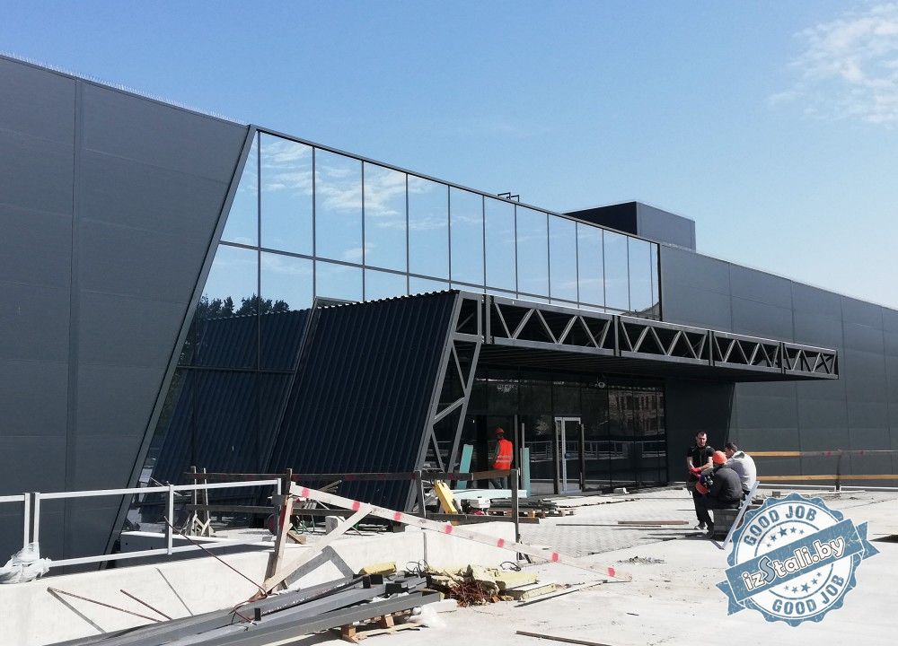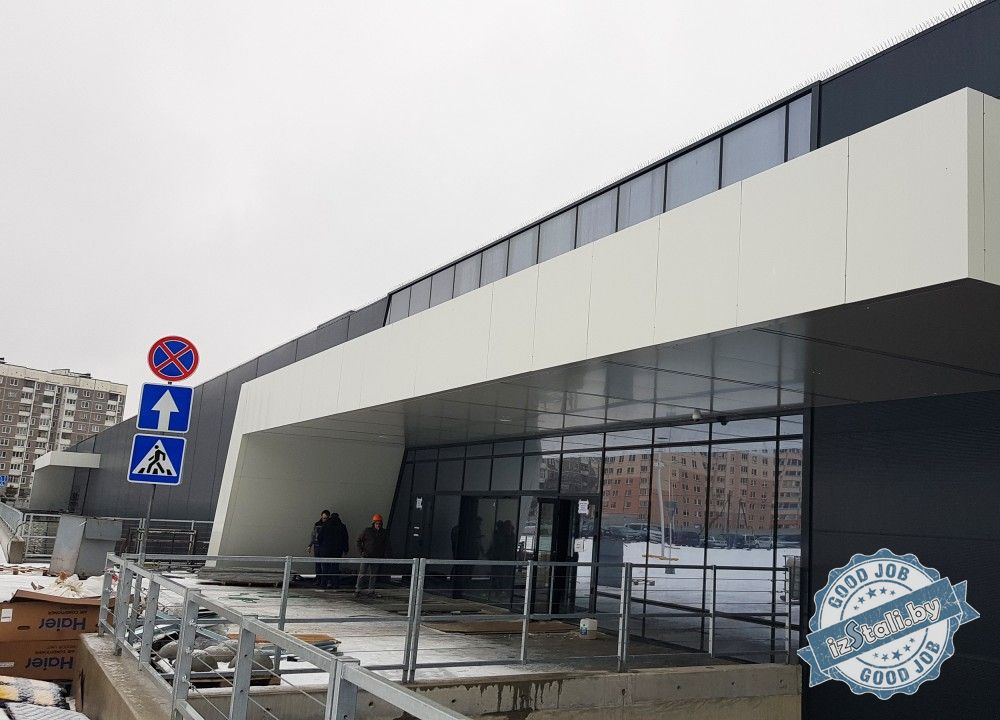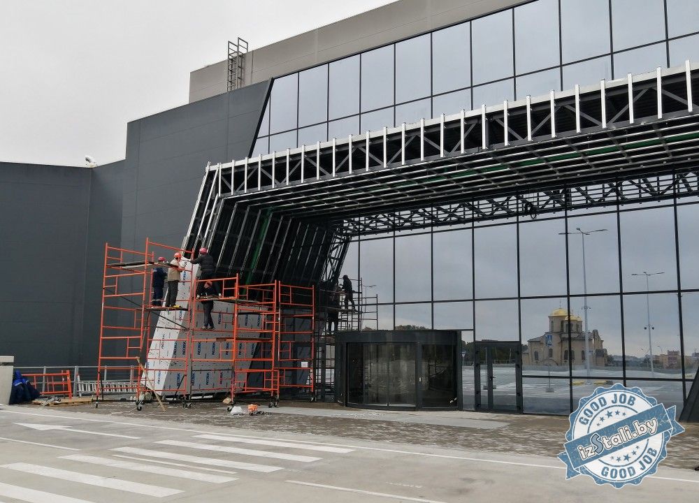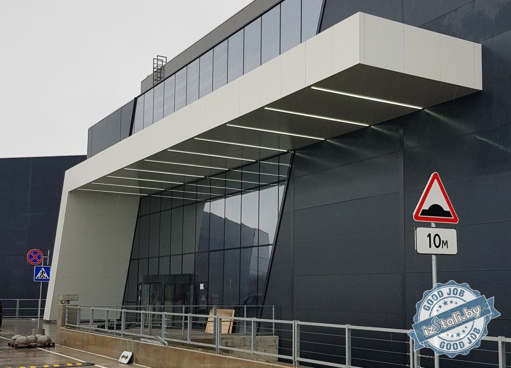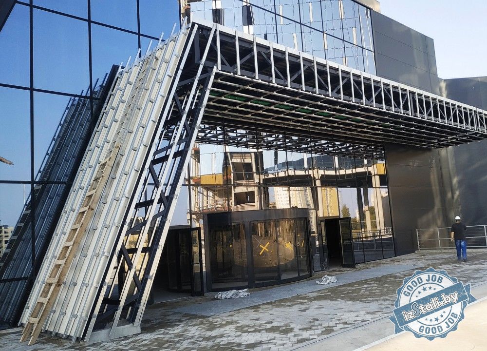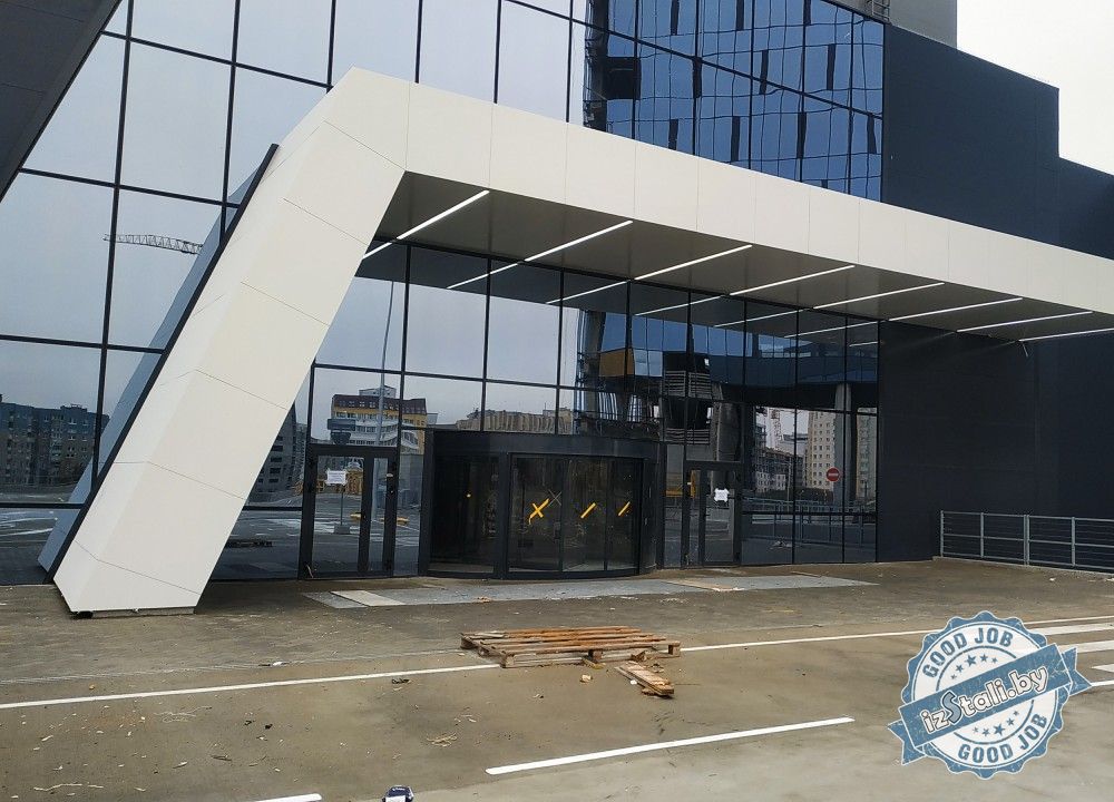 Козырьки входных групп ТРК Тринити в г.Гродно