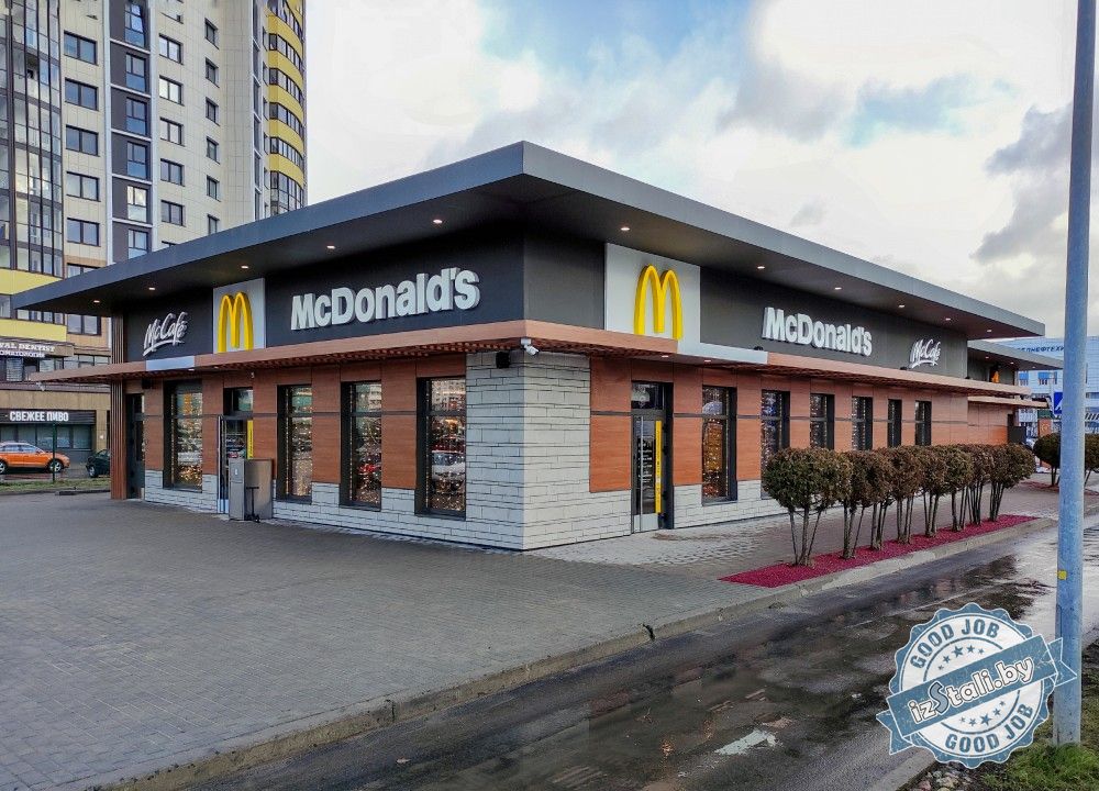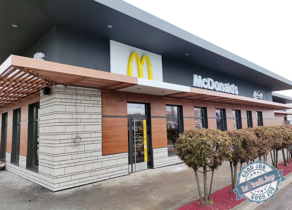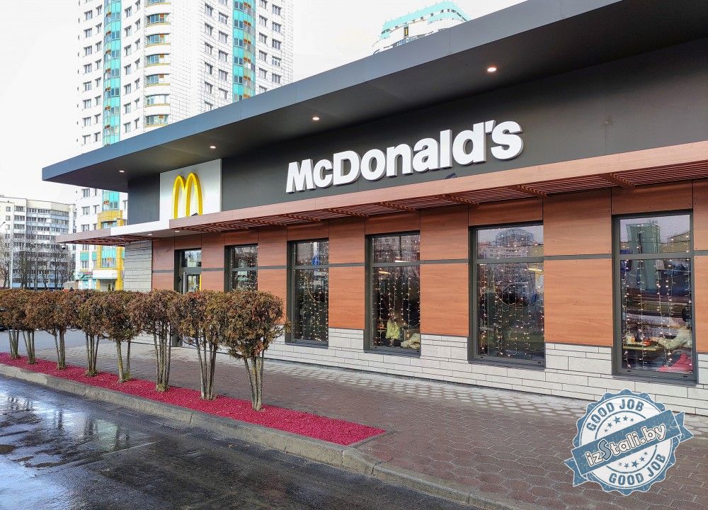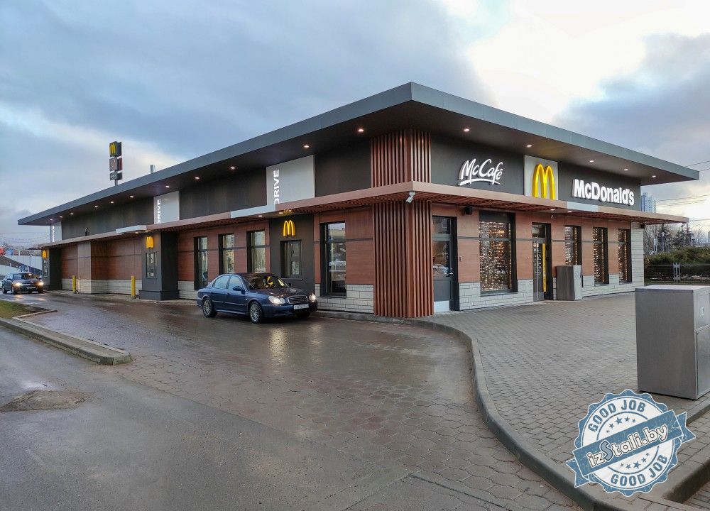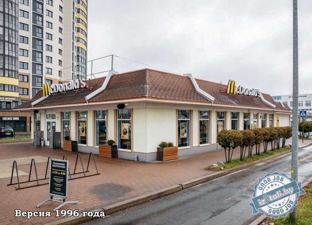 Завершилась реконструкция одного из старейших Мак Дональдс в Минске находится на проспекте Дзержинского, 96. «МакДональдс» на пр.Дзержинского, 96 был открыт в декабре 1996 года и был одним из трех первых ресторанов сети в Минске. С момента открытия на фасад, ни интерьер ресторана не менялись и выглядели первозданно.