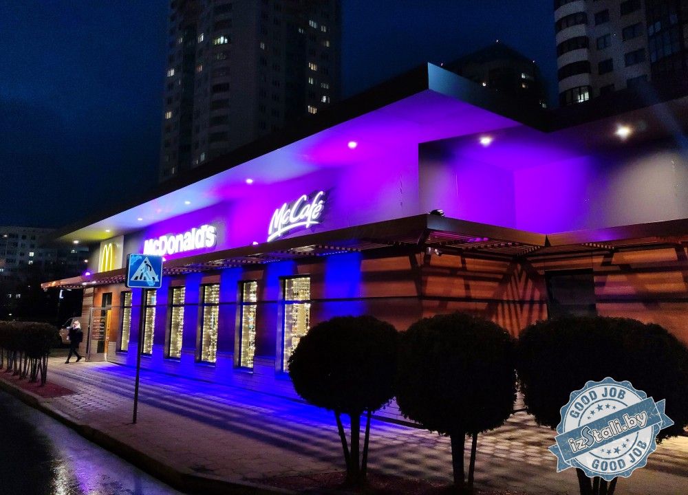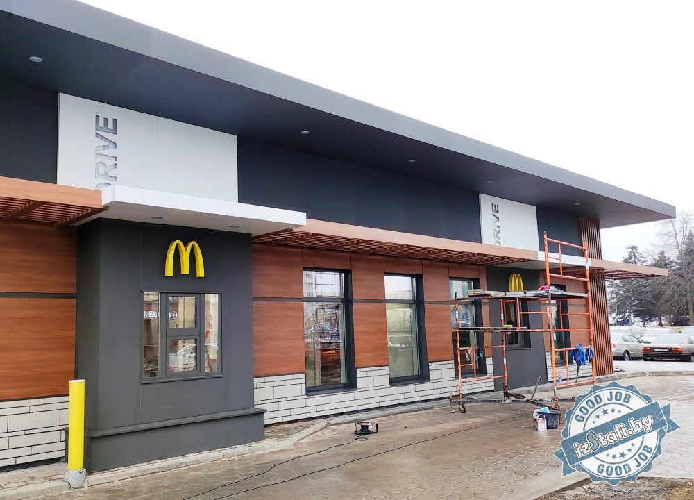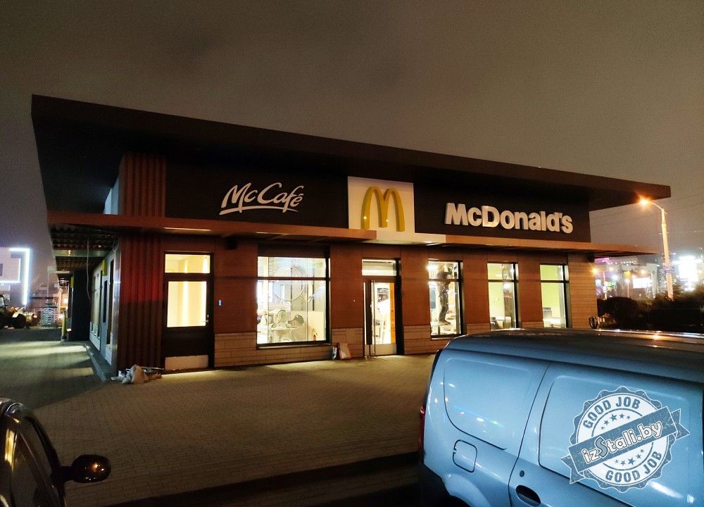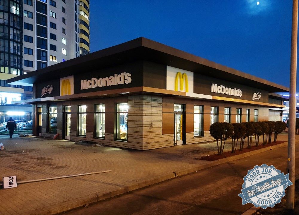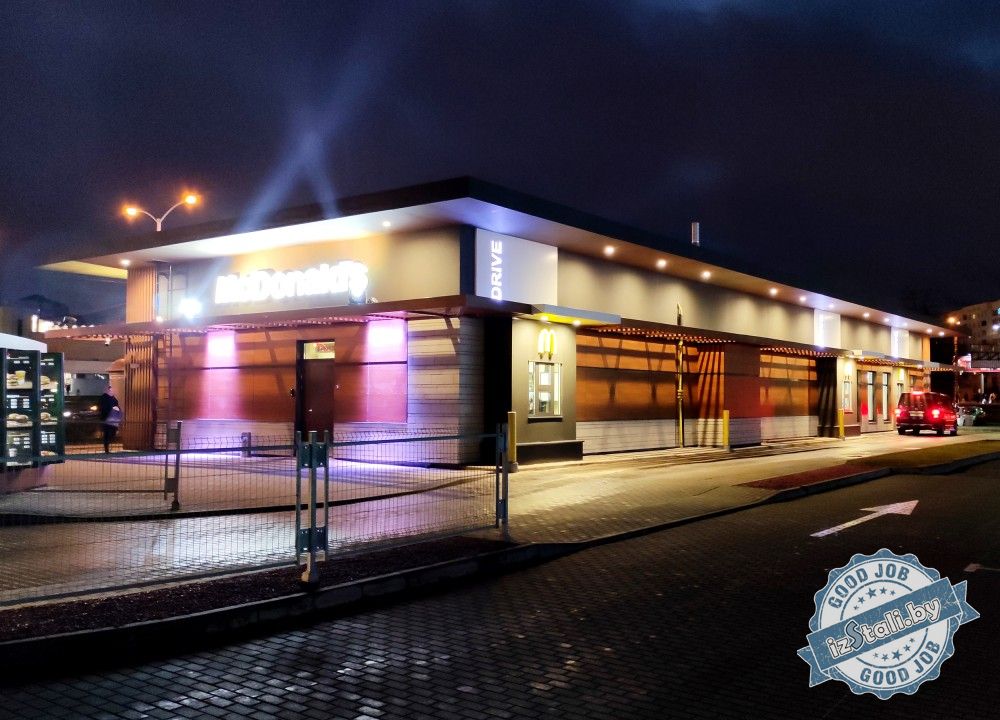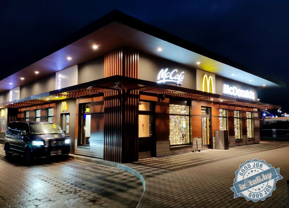 Завершилась реконструкция одного из старейших Мак Дональдс в Минске находится на проспекте Дзержинского, 96. «МакДональдс» на пр.Дзержинского, 96 был открыт в декабре 1996 года и был одним из трех первых ресторанов сети в Минске. С момента открытия на фасад, ни интерьер ресторана не менялись и выглядели первозданно.