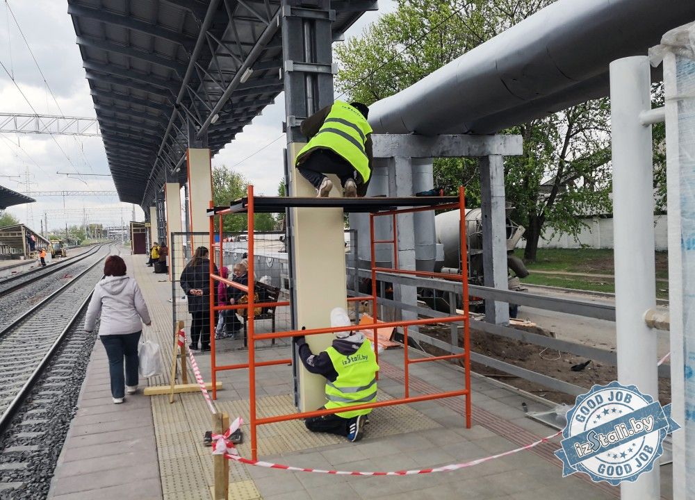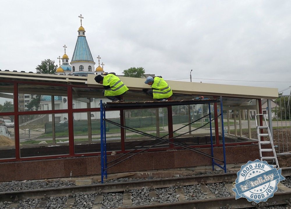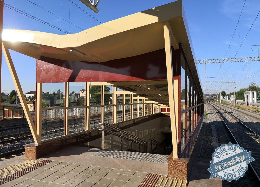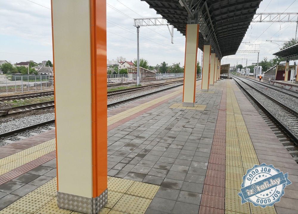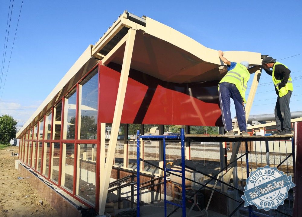 При отделке навесов над перронами и светопрозрачных навесов над выходами из подземных переходов на железнодорожной станции Тракторный завод в Минскеприменялись кассеты из алюминия в полимерном покрытии. Порошковая покраска алюминия позволила придать такой отделке яркие долговечные краски. Для придание объемных форм элементам отделки на несущий металлокаркас была установлена подсистема из оцинкованной стали.
