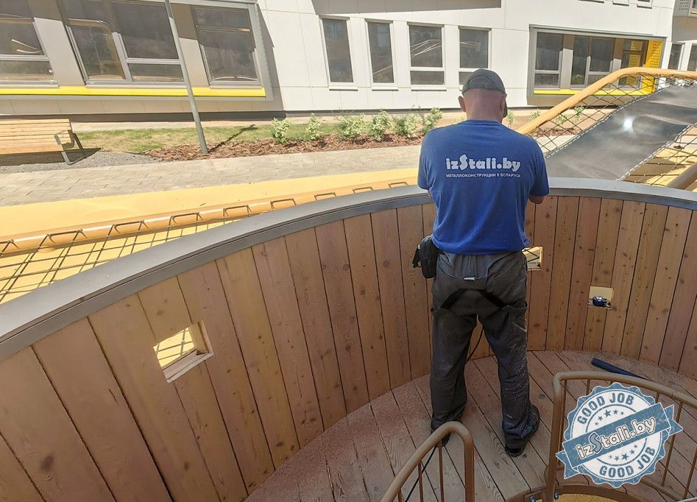Консольная горка из канатов с резиновым ковром для лазания — это захватывающая и необычная игровая конструкция, которая привлекает внимание детей и взрослых. Она состоит из прочной металлической несущей рамы, на которой натянуты толстые канаты, образующие переплетения, приглашающие юных исследователей покорять новые высоты. Дети с азартом взбираются на них, испытывая свою ловкость и смелость. Лазалки, словно настоящие горные вершины, манят к себе, позволяя каждому проявить свои способности и фантазию, развивать ловкость и координацию. Они могут карабкаться по вертикальным и горизонтальным элементам, перепрыгивать с одного уровня на другой, а также использовать канаты для поддержки во время игры.А на краю площадки возвышается уютный домик на высоте. Он словно корабль в облаках, где можно просто отдохнуть от шумных игр. С балкончика открывается прекрасный вид на всю площадку.