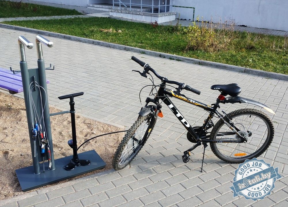 Уличная станция для ремонта и обслуживания велосипедов может быть полезна не только велосипедистам, но и для подкачки шин в коляске, для подкачки игровых мячей, для выполнения мелкого ремонта доступным на станции инструментом.