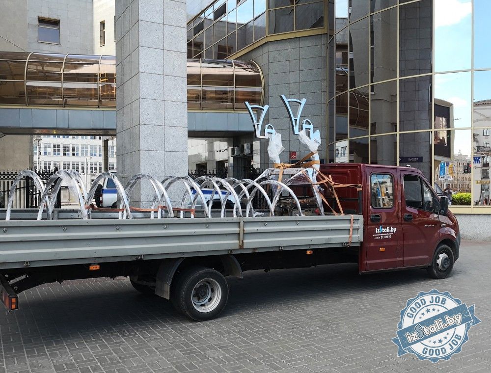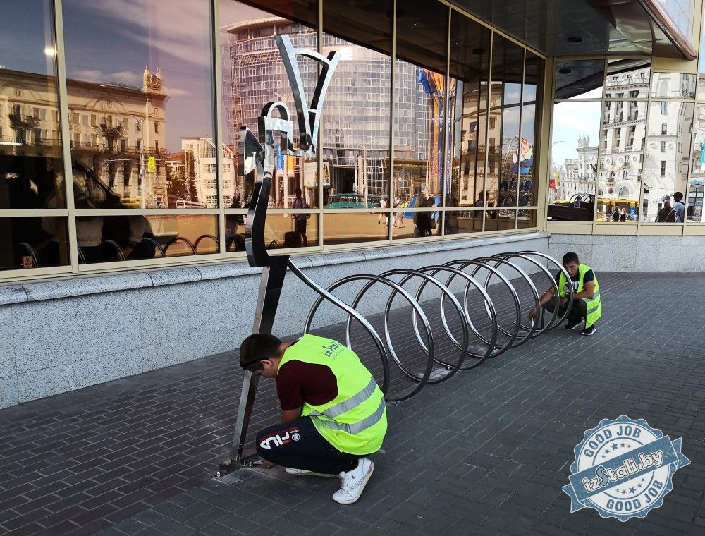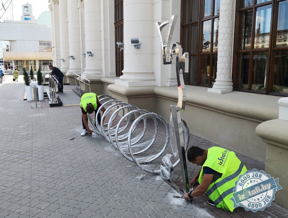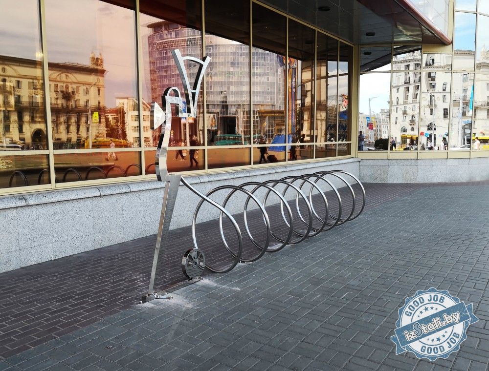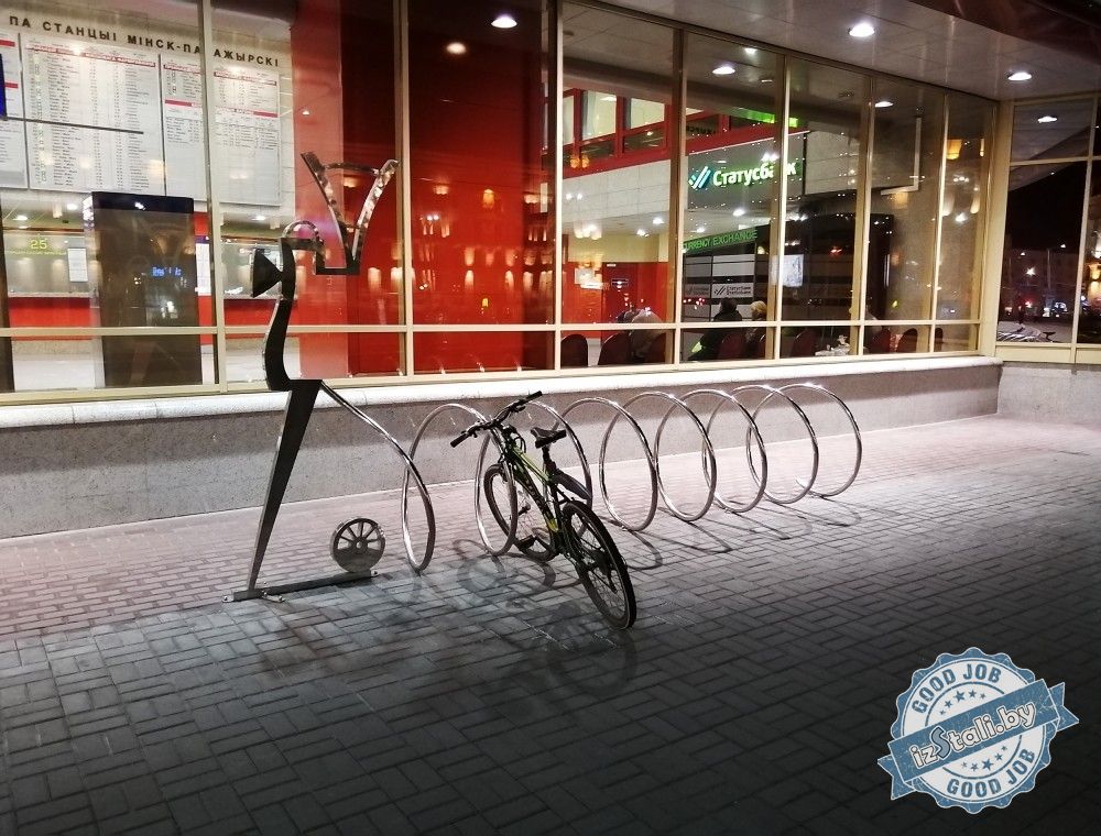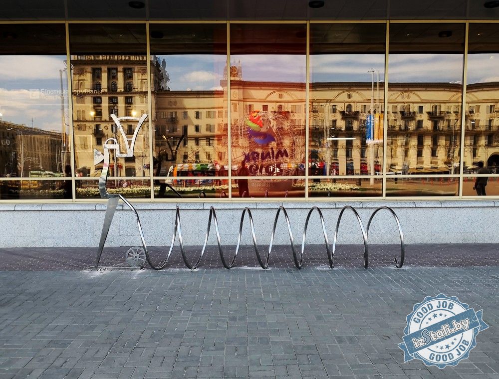 В предверии Европейских игр 2019 в г.Минске Беларусская железная дорога подарила городу оригинальные декоративные композиции из нержавеющей стали. Велопарковку в виде пружины возглавляет объемный силуэт паровоза из нержавеющей стали, отполированной до зеркального блеска.