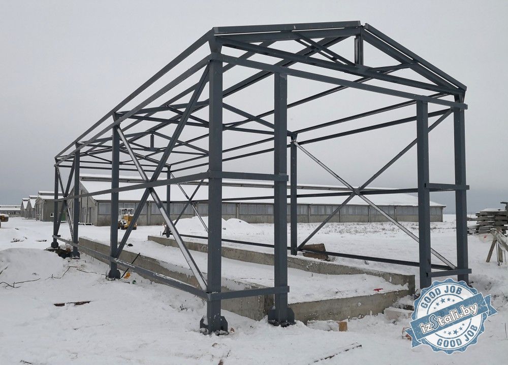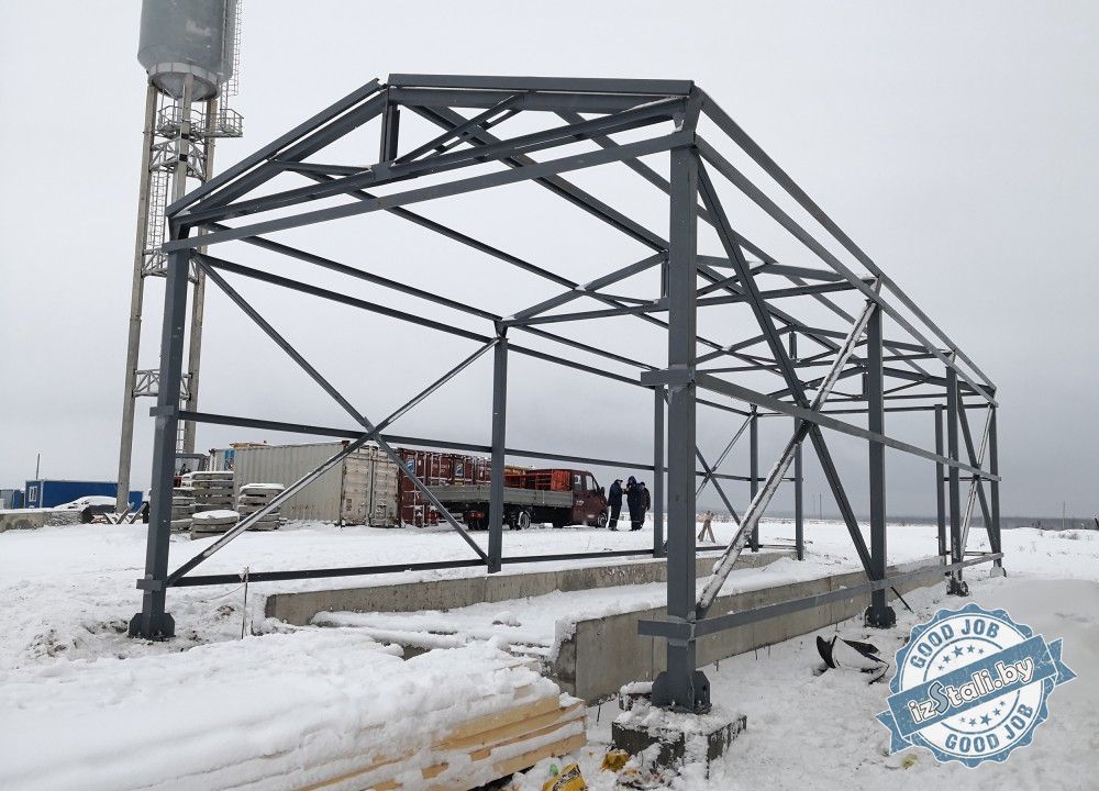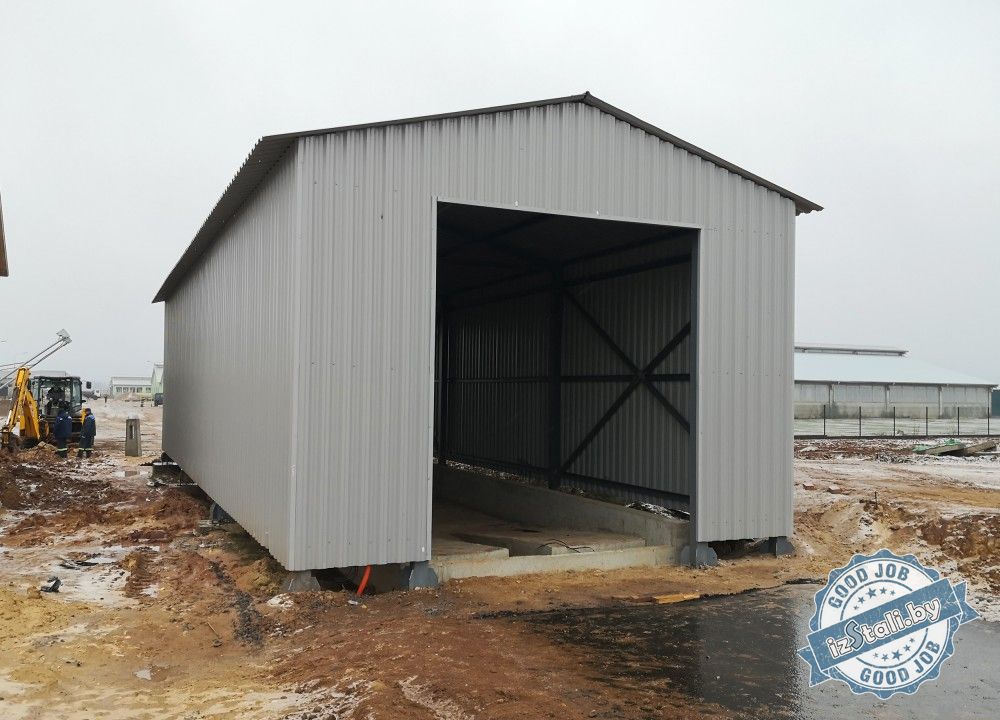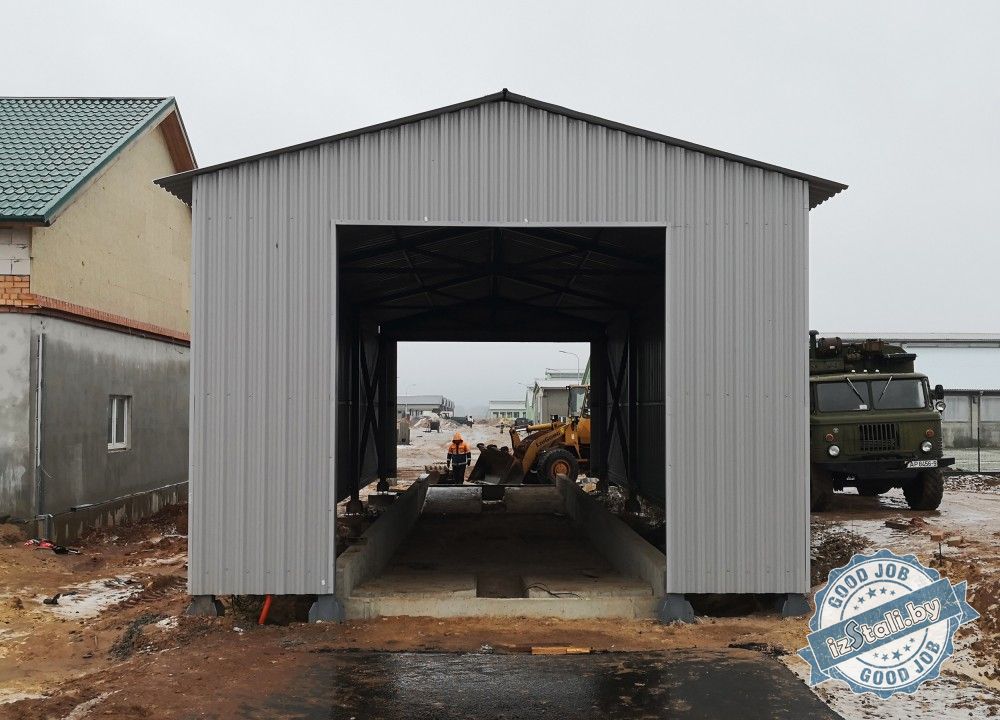 Над ямой установлен навес проходного типа. Прочный стальной металлокаркас установлен на фундаментных блоках и зашит оцинкованным профилированным листом с полимерным покрытием. Такая конструкция навесов надежна и долговечна.