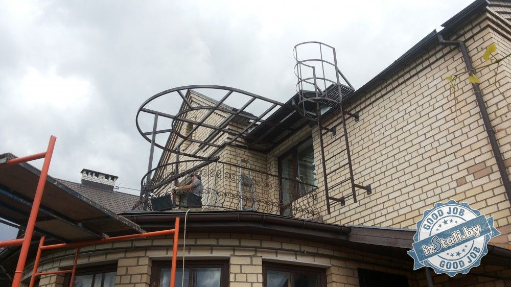 Для удобство обслуживания вентканалов, очистки снега с козырька с балкона на крышу была установлена металлическая лестница.