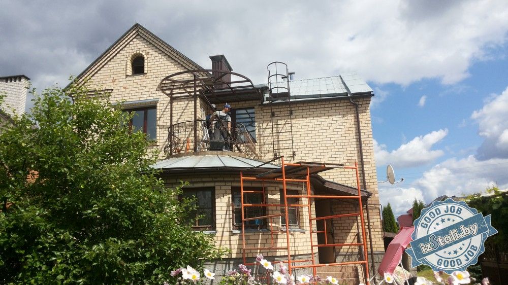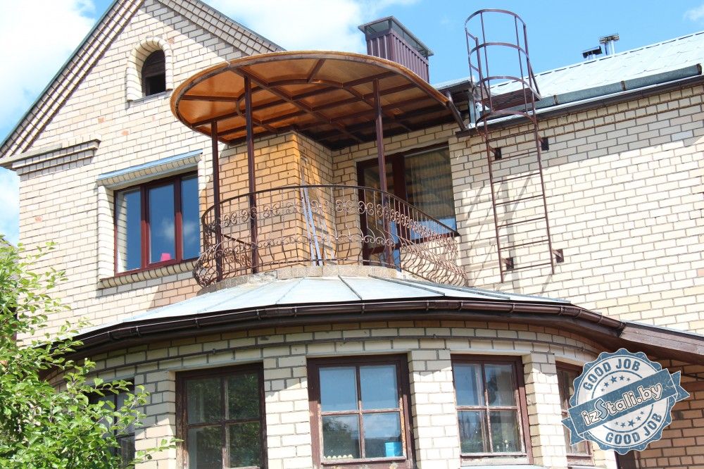 Отсутствие навеса над балконом вызывало постоянные протечки в веранду, расположенную под ним. Ремонт гидроизоляции балкона решал проблему временно, через одну-две зимы протекание возобновлялись. Поэтому заказчик решил выполнить козырек над балконом.