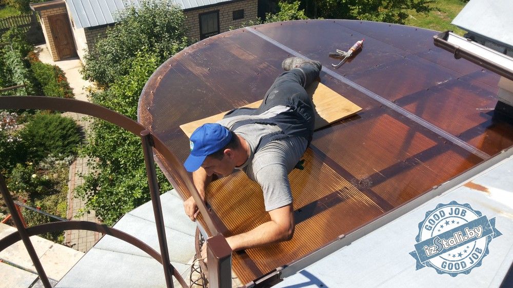 В качестве материала для крыши на балконе можно использовать самые современные и надежные кровельные материалы – металлопрофиль, профнастил, металлочерепицу, ондулин, сотовый или монолитный поликарбонат, стекло и другие.