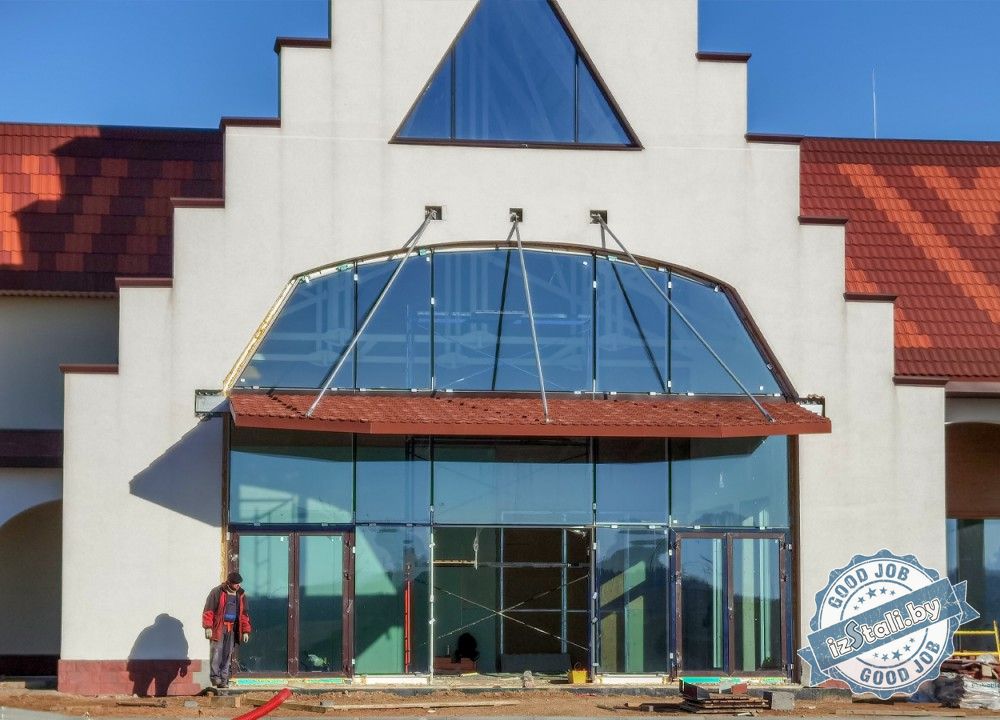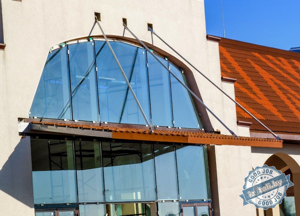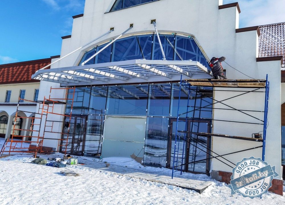 Козырьки входных групп в торговом центре Сеница