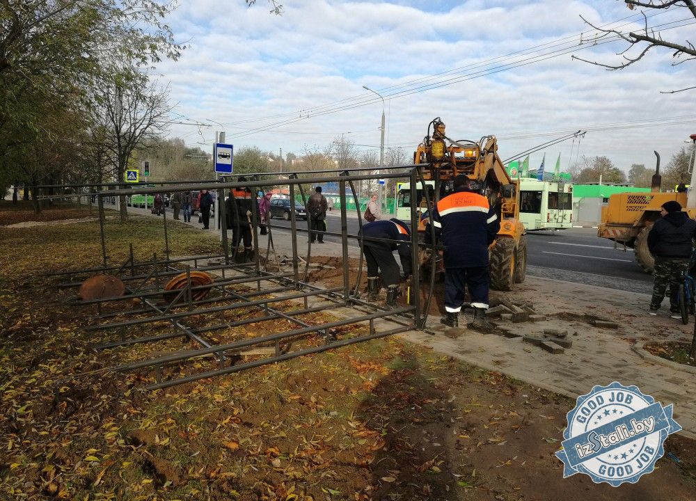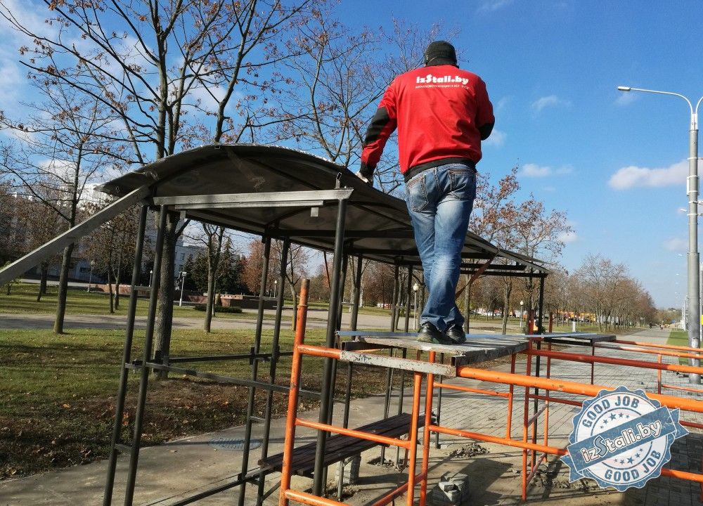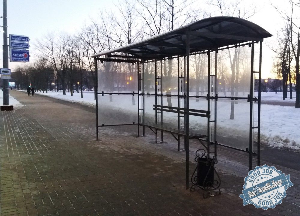 Для человека ждущего транспорт нет способа лучше скоротать время, чем присесть на лавочку. Ну а идет дождь, снег или печет солнце, ветряно, то прекрасно, чтобы эта лавочка была под крышей. Поэтому в городе Могилев при реконструкции транспортной развязки устанавили современные конструкции остановочных навесов, предназначенные для комфортного ожидания. Для того, чтобы было светло и видимость во все стороны стены выполнены из закаленного прозрачного стекла. Такое стекло имеет высокую прочность, долговечно, не царапаеться. Универсальный размер стекол на всех остановочных пунктах делает их взаимозаменяемыми, что важно при экплуатации. Крыша остановки ожидания, выполнена из тонированного поликарбоната. Прочный и долговечный каркас выполнен из стали, окрашенной грунтом и эмалью. Лавочка выполнена из дерева хвойных пород пропитанного антисептиками и декорирующим составом.
