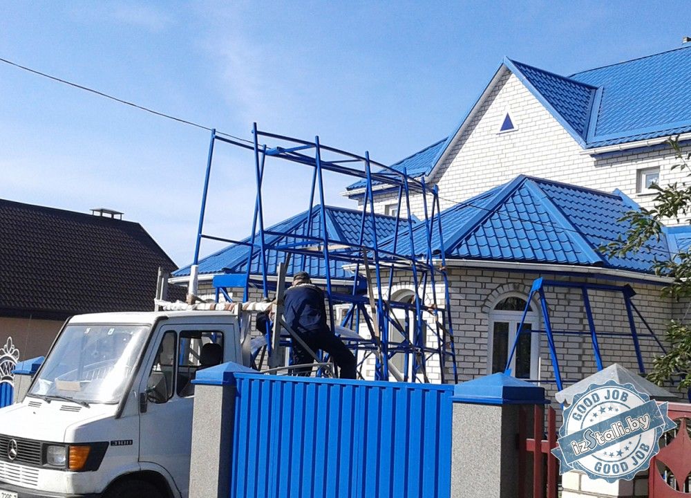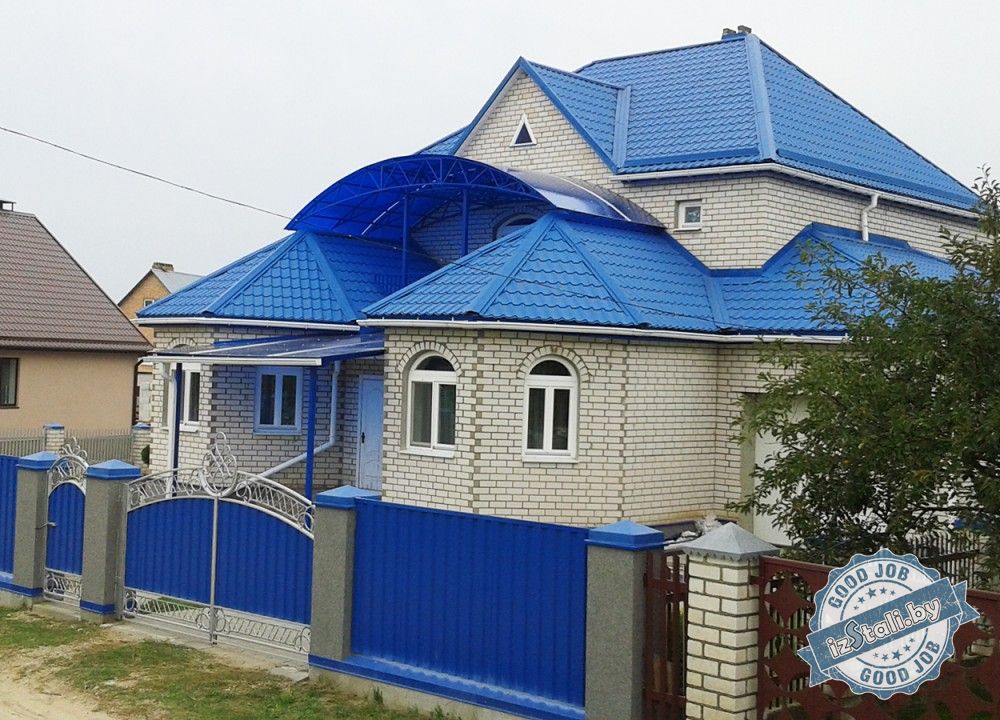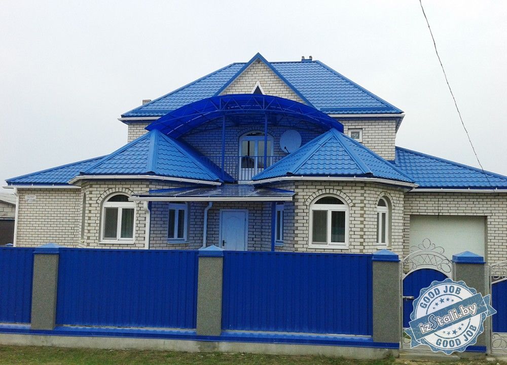Металический навес над балконом и козырек над входом в дом с покрытием канальным поликарборнатом защитил плоскости от пагубного воздействия осадков. Теперь можно с комфортом провести время на балкончике, имея надежную защиту как от осадков, так и от палящего солнца. На таком закрытом балкончике можно смело расставить мебель, не боясь, что она промокнет и придет в негодность.