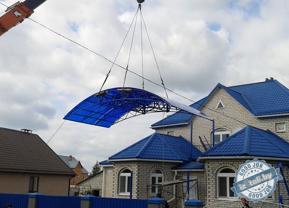 Постоянное разрушающее воздействие атмосферных осадков на плоскую кровлю балкона привело заказчика к установке навеса над балконом.