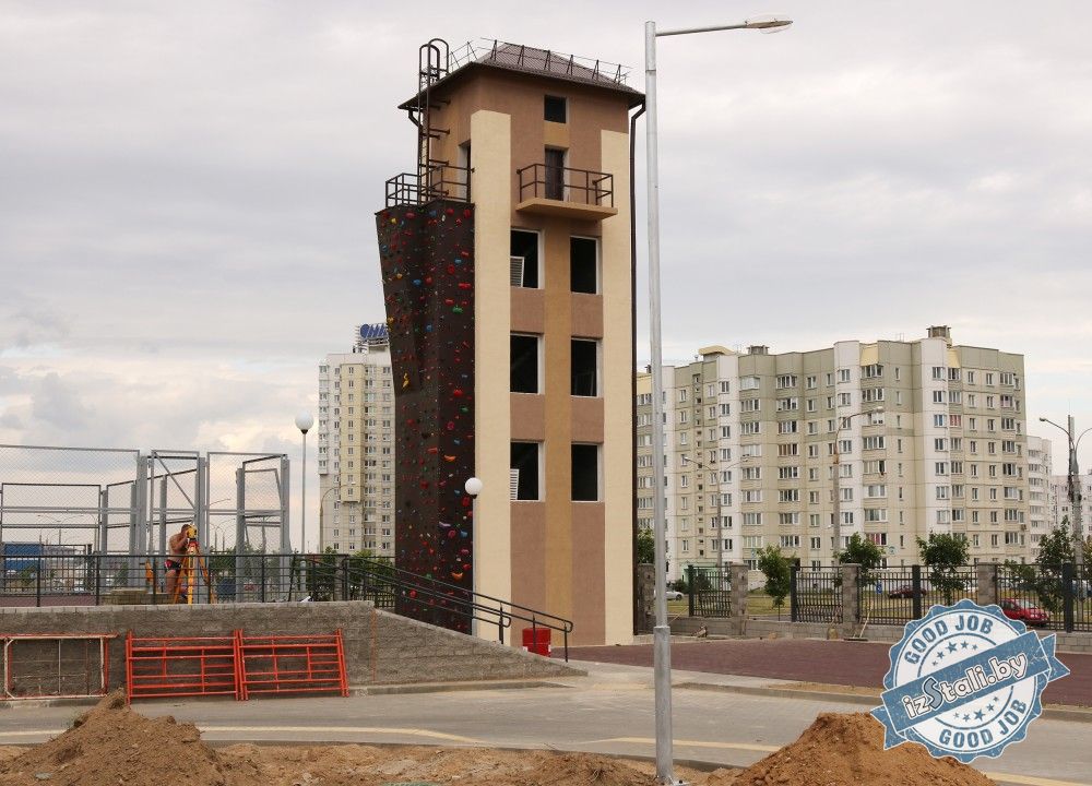 В новом пожарном депо в микрорайоне «Каменная Горка» в Минске предусмотрен современный комплекс для тренировки спасателей со скалодромом высотой более 12м.
