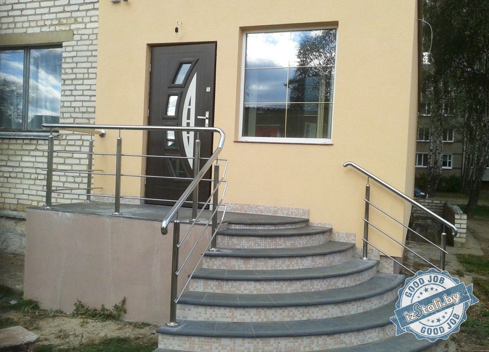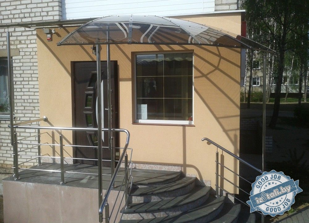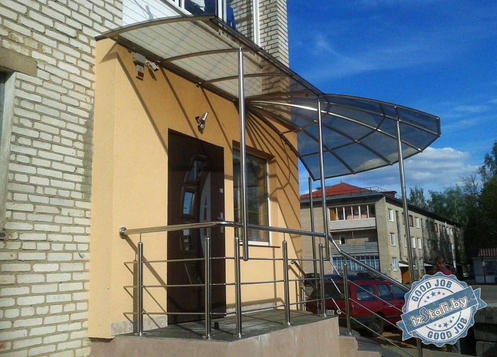Навесы могут быть выполнены из разных материалов в зависимости от пожеланий заказчика. А ограждения из нержавеющей стали лучшим образом сохранят свой первозданный вид, подолгу служат и обладают высокой степенью устойчивости к естественной коррозии и загрязнениям. Благодаря большому выбору ограждений, вы можете скомплектовать свою неповторимый и индивидуальный фасад здания.