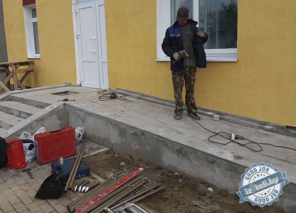 При выполнении ремонта в административно-бытовом корпусе ОАО "Вторчермет" в г.Молодечно производилась замена лестничных ограждений и ограждений входной группы.