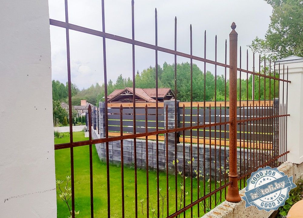 Старый ржавый кованый забор с шипами удаляет нас на несколько веков назад. Это первый архитектурный элемент, которого мы касаемся попадая в усадьбу. Кованые заборы всегда выделялись своей утонченностью, стилем и вкусом. А данное решение, ещё и практичностью. Так как ржавое исполнение забора не требует ухода и забор просто продолжает жить своей многовековой жизнью. Кованый забор - это надежное ограждение дома и шикарное украшение территории.